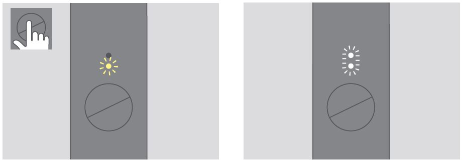 按住袖珍充電器按鈕 4 秒鐘,然後鬆開; 袖珍充電器狀態燈和支架狀態燈將緩慢亮起。